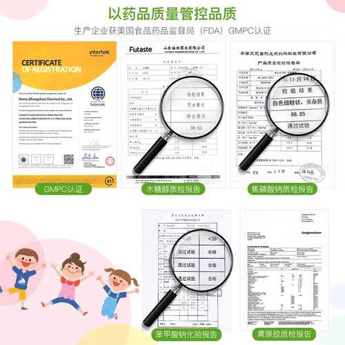 添加了维生素B、E多种复合成分,呵护牙齿健康。食品级的木糖醇等原料,不用担心宝宝误食用,让宝妈更放心。