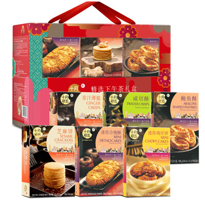 颜值较高的质感礼盒装饼干,适合送礼使用,显得诚意满满且有面子。内含糕点和薄饼,种类多样,有甜有咸,口味丰盛。
