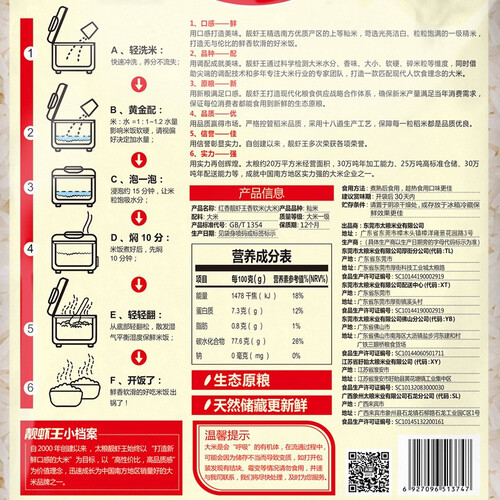 选用口感稳定的优质油粘米,怎么蒸都好吃,水少则软糯适口,水多则香甜弹牙,且冷置不易回生,好米不浪费。