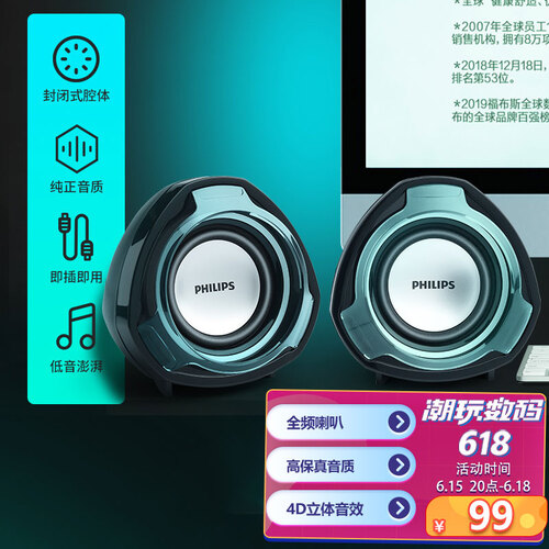 封闭式振膜设计,音腔穿透力更强。开面式外形扬声器,除却织物与金属盖遮挡,音质更清晰。双喇叭立体声,享受环绕音质。