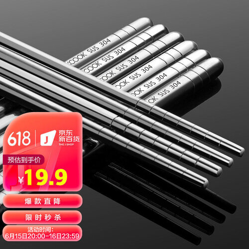 美厨 方形防滑 不锈钢筷子