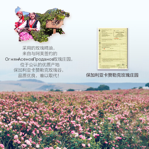 富含大马士革玫瑰精油,其亮肤因子,可以有效的改善肌肤暗沉,缓解肌肤干燥。坚持使用,让你的肌肤红润有气色。