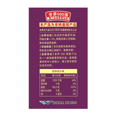 杜绝使用转基因植物入料,只挑选非转基因的低芥酸油菜籽进行榨油,肥沃优良的土地造就了含较多亚油酸和亚麻酸等营养的纯香油品。