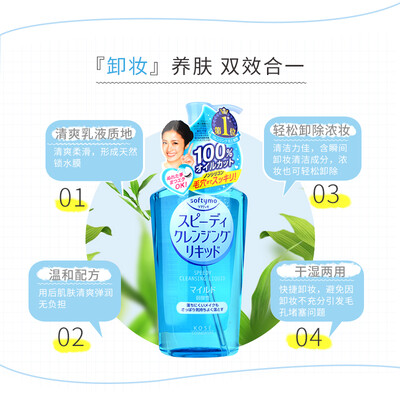 清爽乳液质地,可以形成良好的补水膜,锁住肌肤水分。同时具备良好的清洁力,快速清除彩妆,深层清洁不残留。