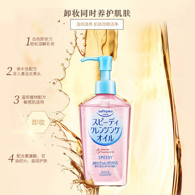 温和无添加配方,油状质地清爽不腻;清洁力强,脸部彩妆不易残留。添加多种润肤成分,使用后能够令肌肤更加柔滑细腻。