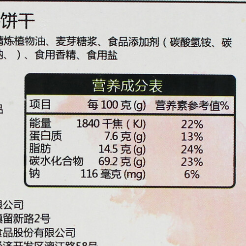 选用优质原料制作而成的饼干,酥脆香浓的口感,含有丰富的营养元素,能够带来饱腹感。