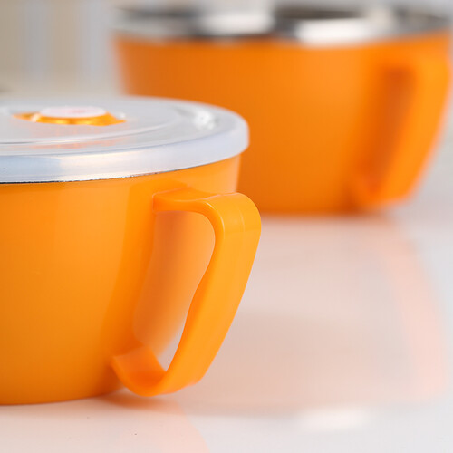 外观选用橙色色系,具有青春活泼的气息,打造有活力的生活方式;采用加盖密封设计,盖好碗盖后可关闭出气孔,倾倒也不洒漏。