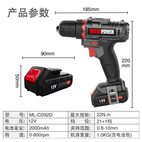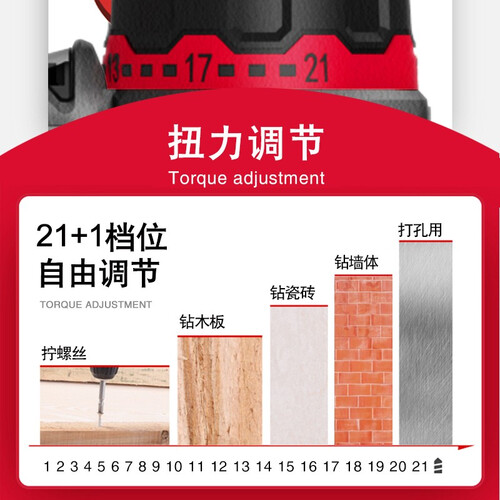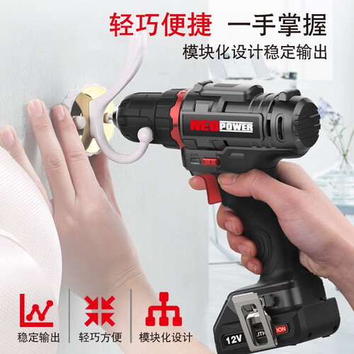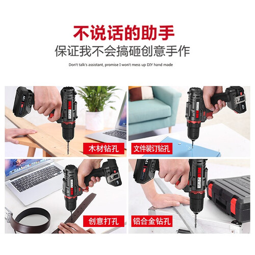 电钻设有LED灯设计,可以在黑暗之处为您提供明亮的照明,方便您的使用。电量显示设计,可以让您清楚知道电量情况。