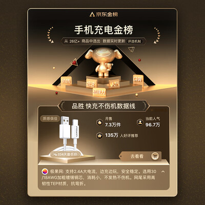 2.4A大电流+快充芯片,快速回血不伤机,拒绝长时间等待。更有全新工艺,解决接头处腐蚀发黑情况,有效延长数据线寿命。