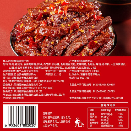 蜀道香 休闲零食麻辣牛肉干