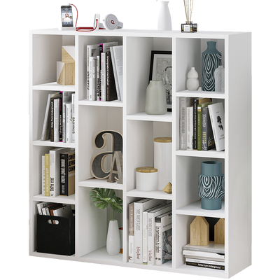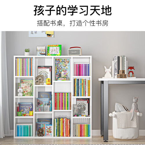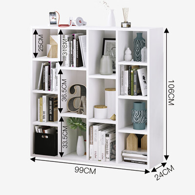 简约时尚 | 这款书架采用敞开式储物格设计,层板之间为T型结构,使书架更稳固耐用。书架整体颜色为时尚的暖白色,共有十四个储物格,高低错落有致,显得十分简约优雅。