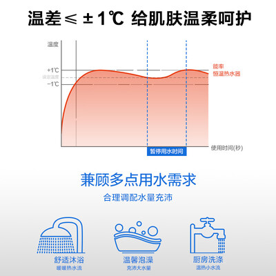 搭载低水压启动技术设计,可适用于多种环境。CPU监控设计,实时调控燃烧状态,让沐浴舒适更安全。