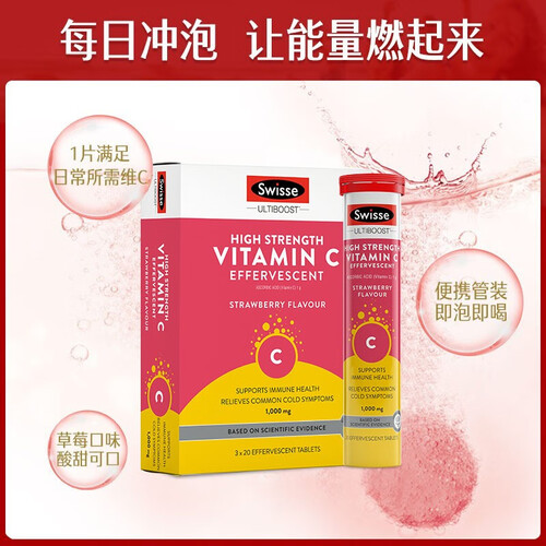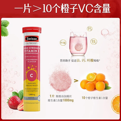 Swisse维C泡腾片支持免疫功能,有助于减轻感冒症状的严重程度,缩短持续时间,并提供健康的抗氧化活性,提升抵御力。