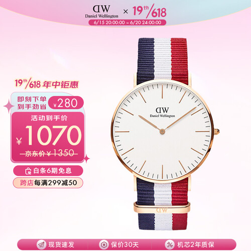 尼龙表带|闪耀金色表圈搭配时针、分针表盘,设计简约又充满小清新风格。时尚的三色尼龙表带还充满青春动感,无论搭配衬衫还是休闲装都尽显男神魅力。