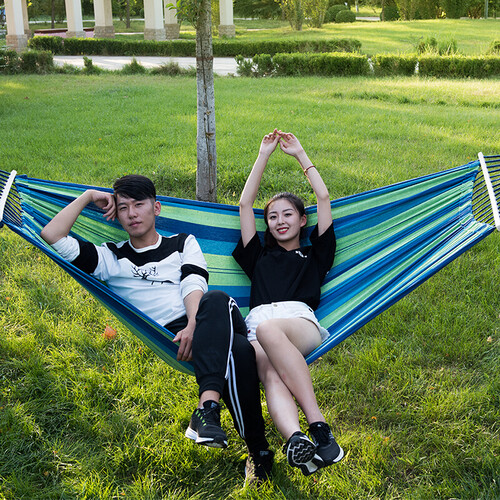 全新帆布面料的吊床,舒适度更高,而且不易断裂。16孔的木棍让吊床充分展开,平衡重量,不易出现侧翻问题。