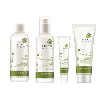 护肤套装中蕴含满满的芦荟成分,清爽无油,让肌肤水润一整天。蕴含氨基酸成分,高效的补水保湿,温和亲肤无刺激感。