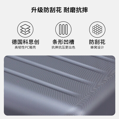 选用德国科思创复合材料,高韧性抗压结构,耐磨蜂窝纹理箱面,提升质感的同时增强箱面耐刮性,TPE减震耐磨万向轮,推拉灵活顺滑省力。