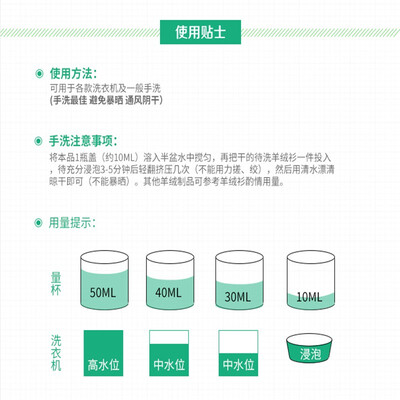 专为清洗羊毛衫研制,可温和溶解污渍,去污效果较好。配方温和安全,低泡易漂,可减少羊毛衫洗后缩水问题。