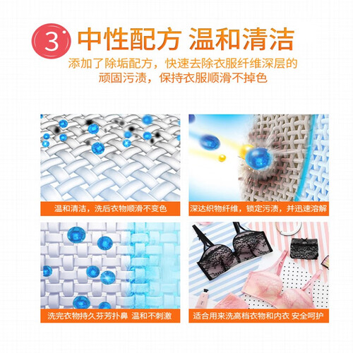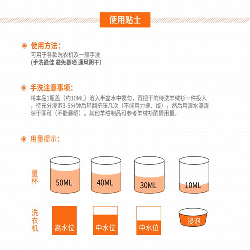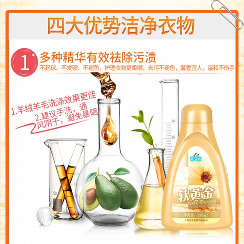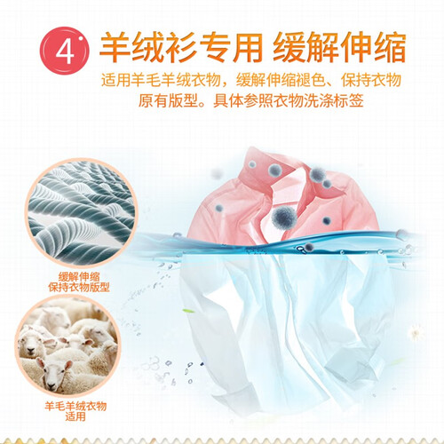 专门针对羊绒织物,低泡易漂洗,温和溶解羊绒纤维上的污渍,洗净能力超好,低泡易漂,呵护羊绒质感,香气幽雅,留香持久。