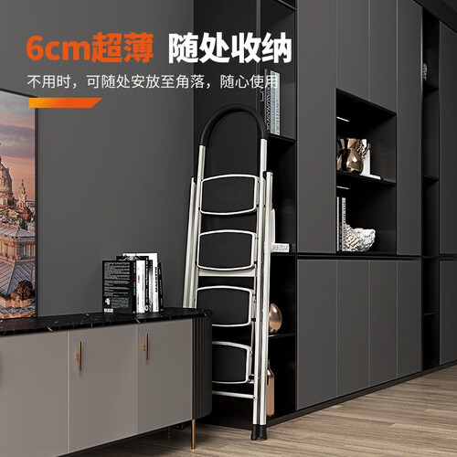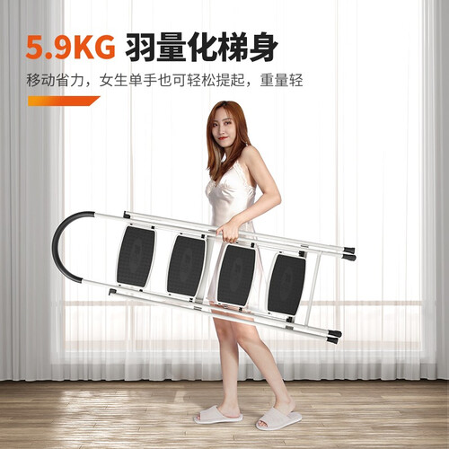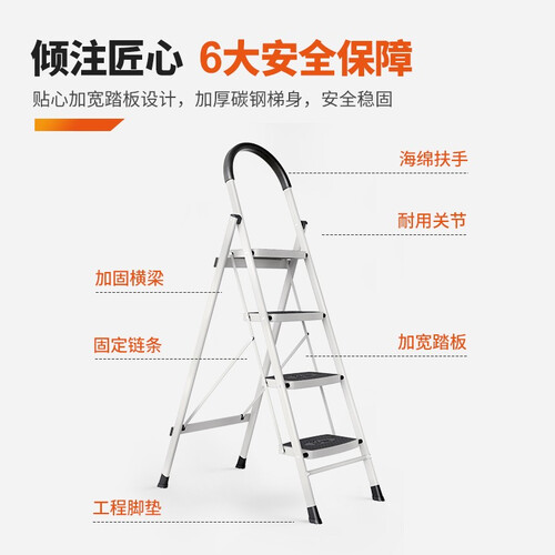 家用梯选用硬度较高的碳钢材质塑造而成,经过加厚处理,更加结实。采用X型加固设计,结构更加稳固,使用过程中不易晃动。