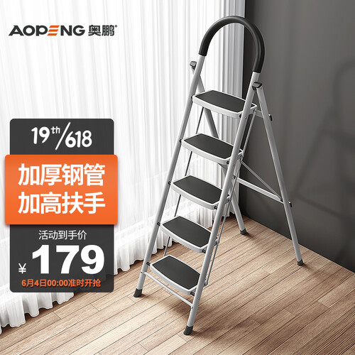 这款梯子采用加厚材质打造,结合五步可折叠设计,应用更广泛。打扫高处卫生,变得游刃有余。
