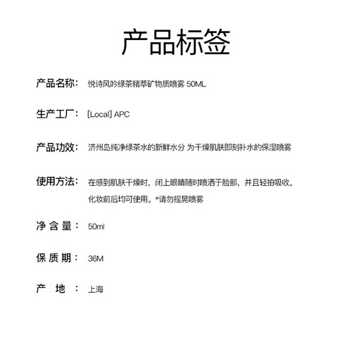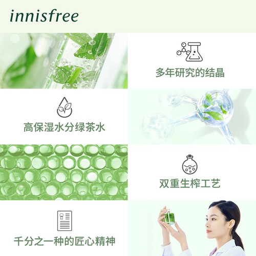 精选氨基酸含量丰富的新鲜绿茶生榨提取而成,为干燥肌肤即可补水充分的同时,帮助打造健康透润的水光肌。
