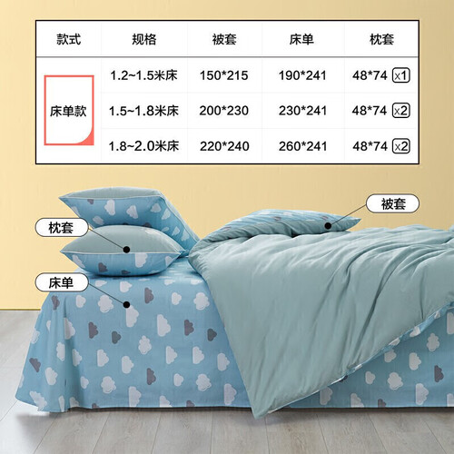 清新的蓝色简单低调,彰显出主人雅致的品味,没有复杂的图案观感舒适。优质的全棉面料,可以放心使用没有有害成分。