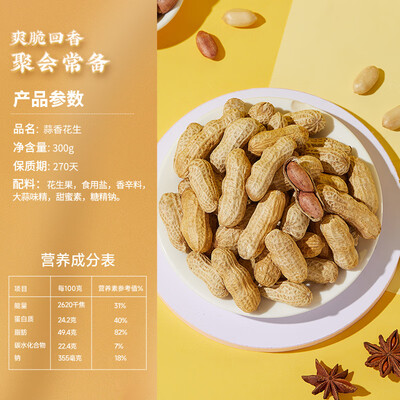 花生颗粒饱满,鲜有坏粒,蒜香十足,口感酥脆,齿颊留香,还可以直接作为下酒菜食用。