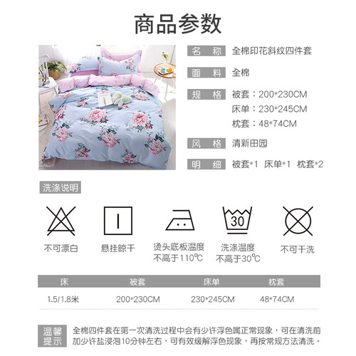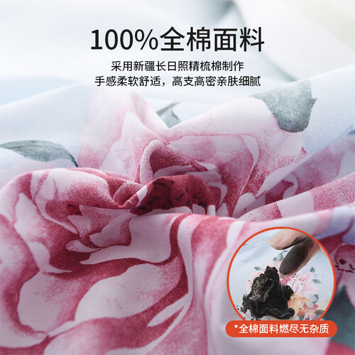 选取晒足125天的天然棉织就,吸湿透气不闷热,带来舒适睡眠。专业的活性印染技术,色牢度高,多次洗涤后不易褪色。