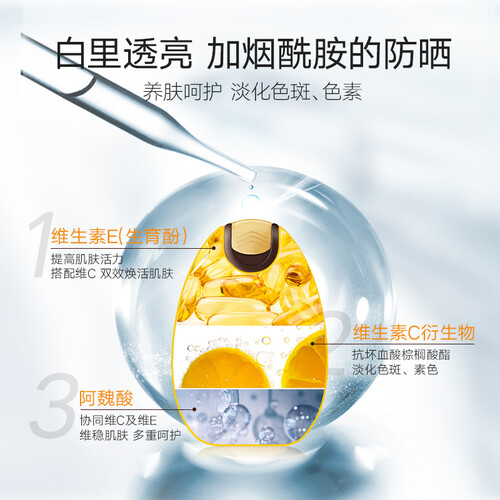 添加向日葵中的活性精华成分,质地温和,起到有效呵护肌肤的作用。含有透明质酸成分,补给肌肤水分,防晒的同时滋润干燥肌肤。