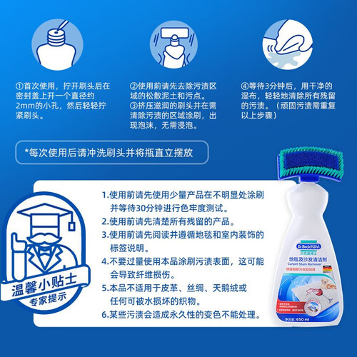 海绵刷头设计,在去渍的同时还能够吸附宠物的毛发;采用针对性配方,可以局部重点去污,您无需拆洗整个沙发。