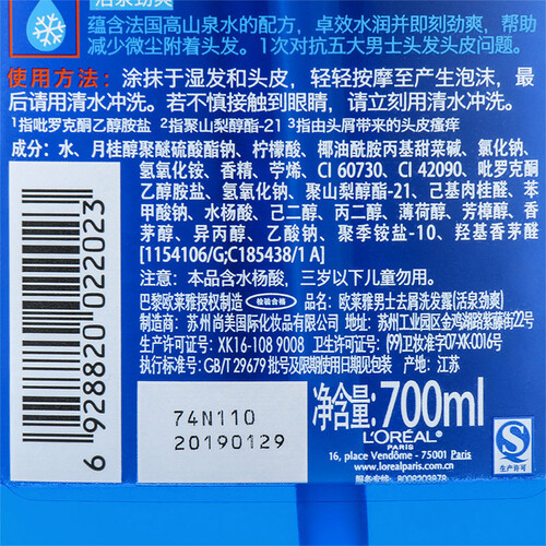 欧莱雅活泉劲爽男士洗发水