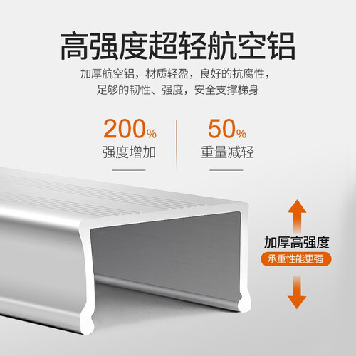 挑选了加厚铝材制成,质地结实耐磨,拥有较强的承重力。特别设置了防滑踏板结构,使用过程中没有滑落风险。