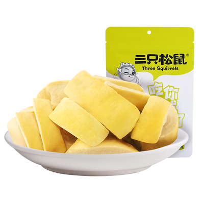 三只松鼠榴莲干采用独特工艺处理,保留应季水果的清新果味,口口都有新鲜感,口感甜脆,入口瞬间点燃你的活力。