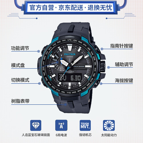 搭载三重感应器,方便户外探险,安全出行。支持100米防水深度,游泳可戴。双LED灯,不惧黑暗读时。