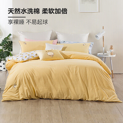优选水洗棉的面料,具有轻微自然纹理,不易留下折痕。使用环保活性印染工艺,让面料拥有良好的防尘性能。