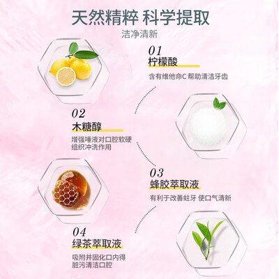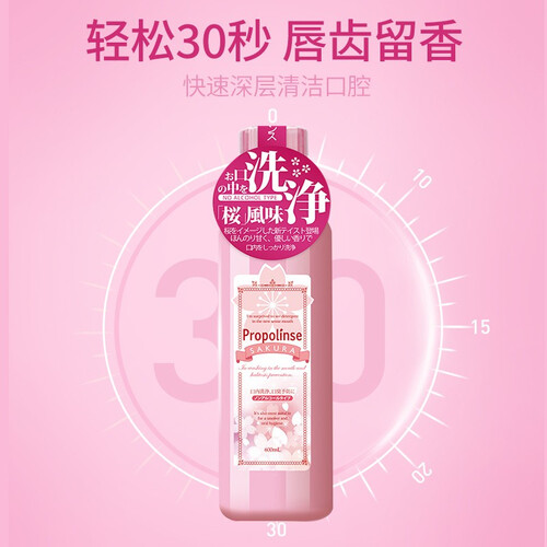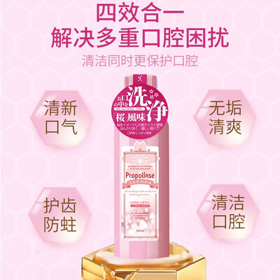 日本进口的樱花漱口水内含有茶叶和天然蜂胶,帮助吸附牙齿表面污渍的同时抑制细菌生长。特别还有樱花香味,口气持久清新。