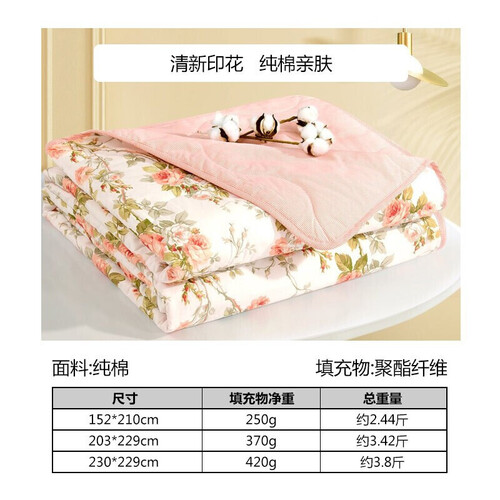 严格挑选纤细柔软的棉纤维为原材料制作而成,透气性非常好;被芯采用波浪形绗缝工艺,内里不易松动,可直接入水清洗。