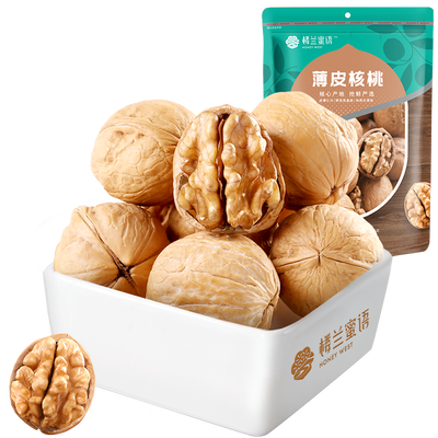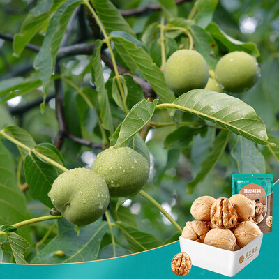 核桃的皮十分的薄,不需要核桃夹子也能轻松的剥开,经过充足的日晒核桃自然裂熟,保证了它的高品质。