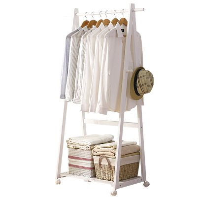 简易的外观,无多余装饰物,不会影响房间的干净整洁;底部采用滚轮设计,可以灵活滑动,让你移动衣帽架更轻松。