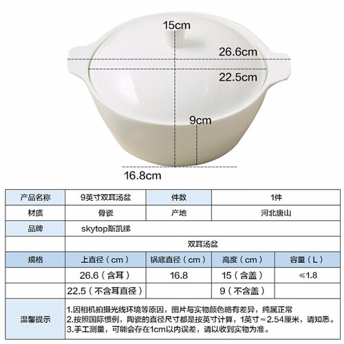 斯凯绨 纯白超大陶瓷碗