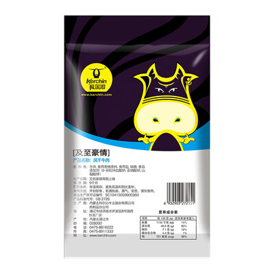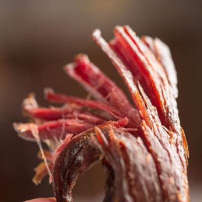 选用每头牛的后腿肉精制,自然烘干,烘烤而成,口感地道有嚼劲。