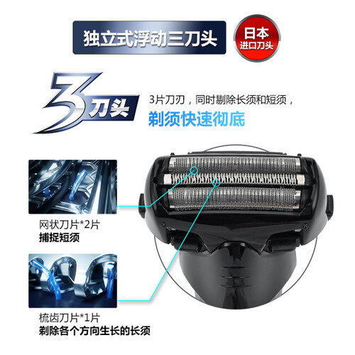 拥有独立式浮动三刀头,可以同时剃除长须和短须,剃须快速彻底。并采用拱形刀网,可以贴合面部肌肤灵活剃须。