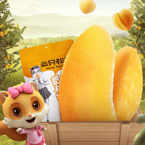 来自三只松鼠云果园的新鲜黄桃,经过精心工艺成为色泽金黄、晶莹剔透的诱人果干。柔韧Q弹的果干,饱藏着酸甜可口的汁液。