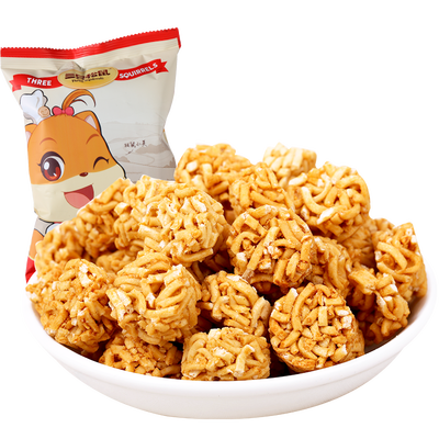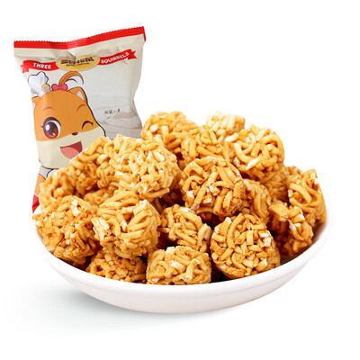 膨化小吃方便面,丸子型形状的干脆面,小巧精致使用方便。干面别有嚼劲,轻咬一口嘎吱作响,酥香爽脆。