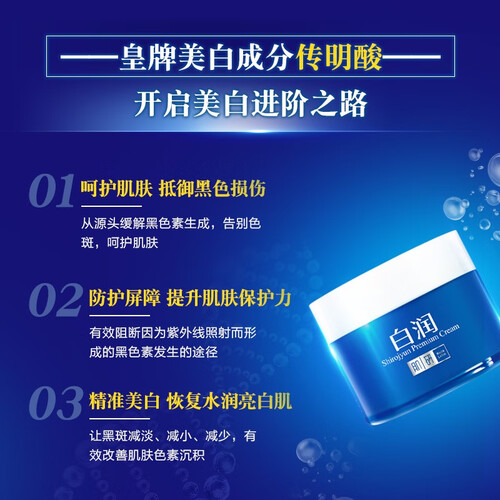 采用高浸透传明酸和维他命C,减少黑色素,减少色斑。富含纳米级透明质酸,深层水润保湿。添加乳木果油,深层滋润。