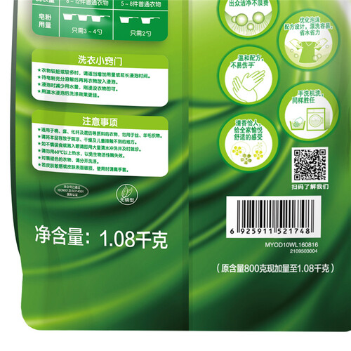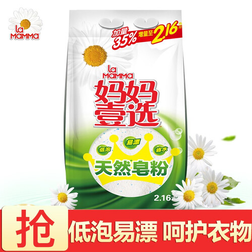 妈妈壹选皂粉新升级采用天然精华精粹,让残留在衣服的污迹更加的健康。低泡易漂洗且香味独特,能够更好的清理衣物污渍。