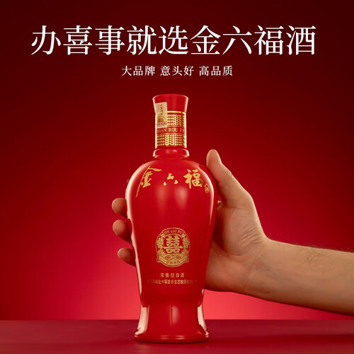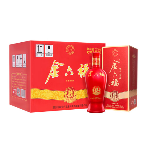 包装采用的是正红色的包装,令人倍感大气,礼赠合适。瓶身上印有烫金喜字,非常适合用于喜宴。