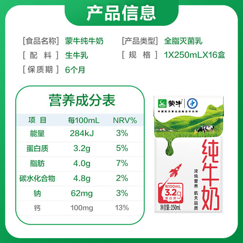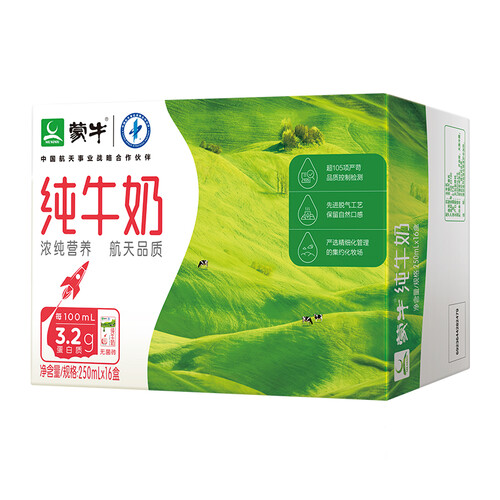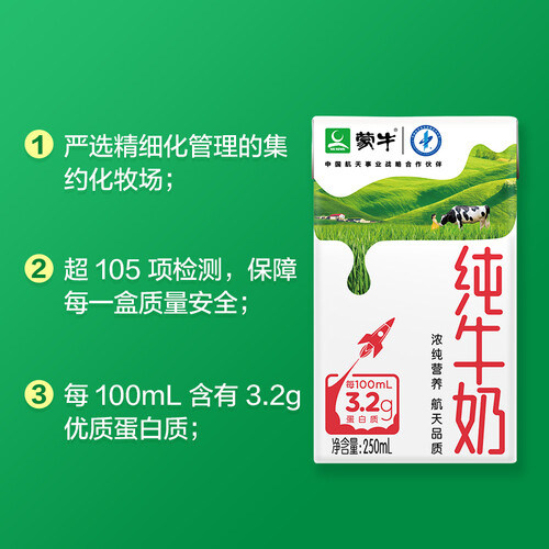 航天定制款式,国家食品检测安全,让你喝的安心。采用100%生牛乳奶源,入口甘醇清爽,奶香四溢。