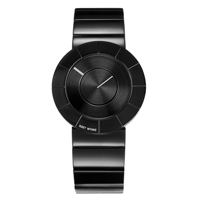 与传统腕表设计与众不同,双盘走时指针的创新设计,使得视觉上简洁利落,旋转的内外盘造型犹如老式唱片机,别致精美。